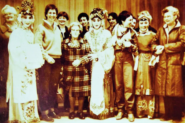 1980年,丹麦妇女代表团在北京观看宋长荣演出后合影。