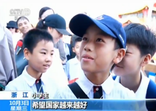 小学生:希望国家越来越好,希望国家越来越强盛,我们的生活越来越幸福。