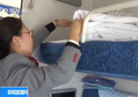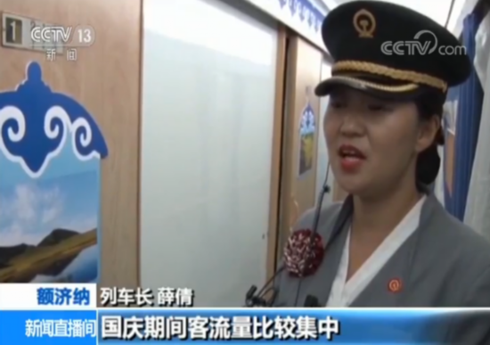 列车长 薛倩:我们这趟车就是国庆期间客流量比较集中,像今天这个旅客就达到八百多人,这个车的特点就是运行距离比较长,尤其是有四百多公里的无人区,所以我们得加强巡视,对车厢的这个设备设施、还有重点旅客我必须得了如指掌。