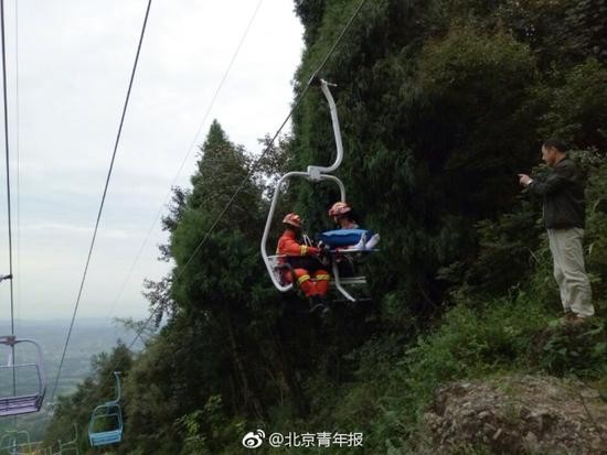 北青报记者今天从四川绵阳市消防支队了解到,2日下午,绵阳窦团山风景区发生一起安全事故,一男性游客在与女朋友乘坐观光缆车时不慎摔落,身体多处受伤被困半山腰上,所幸当地消防等多部门接警后赶到现场,将男子救了下来。目前男子正在江油市人民医院接受治疗,无生命危险。据男子的女友介绍,男子是因在缆车上未抓稳扶手,不小心滑落下去的。