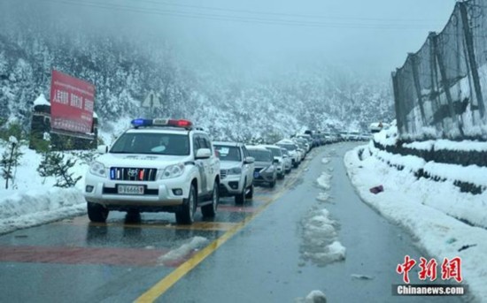 10月2日晚上的大雪一度导致这一进藏重要干道中断,造成1100辆车辆滞留,排队长度达到10公里。在甘孜州、康定市两级党委政府组织下,历经数百名干部、群众彻夜奋战,10月3日下午积雪结冰路段终于恢复双向通行。