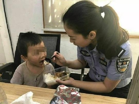 苏晓敏见孩子有点饿,买来饭菜一勺一勺喂给小孩,在苏晓敏妈妈般的照顾下,孩子马上没有了陌生感,非常的乖巧。