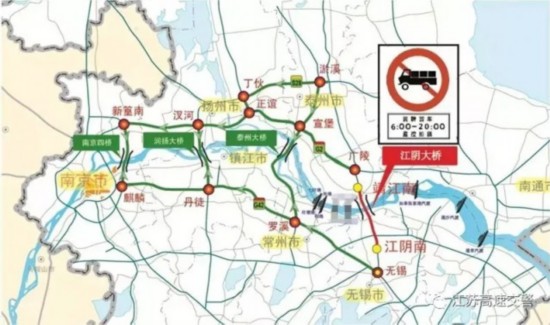 Tip1:建议从南京四桥、润扬大桥、泰州大桥等其他跨江大桥绕行。