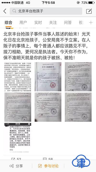 北京警方通报"丰台抢孩子"事件 已对案件开展复核