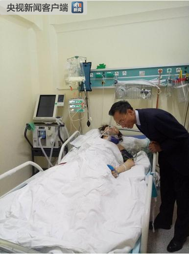 △大使慰问重伤者(图片由大使馆提供)