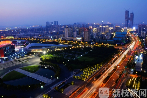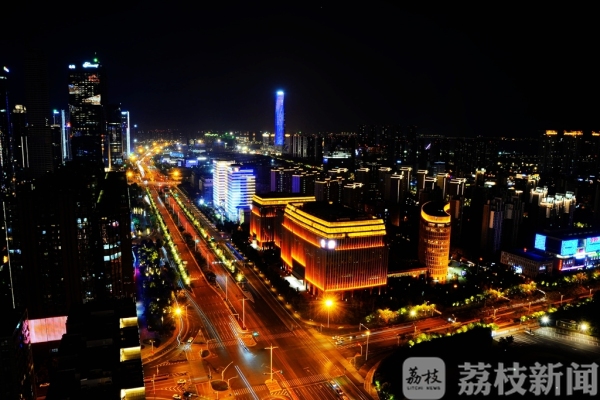昨日(10月5日),荔枝新闻网友登上了南京奥体中心附近地区的一座高楼楼顶,用相机定格夜幕下的城市美丽“晚妆”。