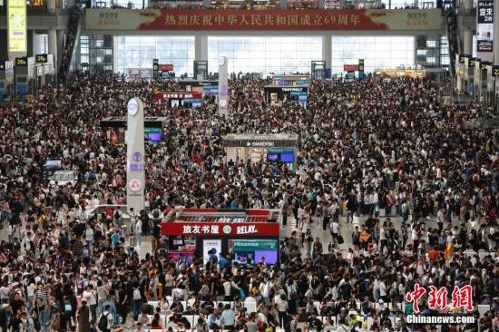 连日来,全国铁路客流继续保持高位运行,铁路部门加大运力投放,科学调度指挥,便利旅客出行。10月5日,共开行列车8386列,其中加开列车519列,其中跨铁路局中长途旅客列车114列,铁路局管内旅客列车405列。北京局集团公司发送旅客116.7万人次,同比增加7.9万人次,增长7.2%;上海局集团公司发送旅客244.7万人次,同比增加13.9万人次,增长6.0%;广州局集团公司发送旅客181.2万人次,同比增加9.4万人次,增长5.5%。 10月6日全国铁路预计发送旅客1400万人次,预计加开旅客列车741列,其中跨铁路局中长途旅客列车144列,铁路局管内旅客列车597列。