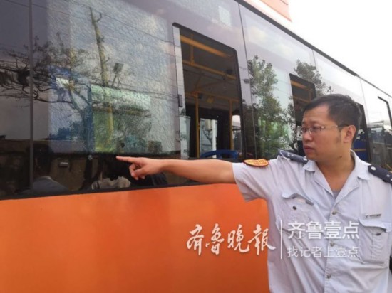 362路驾驶员李师傅称,6日上午,他正在唐河路终点站下客时,突然听到车厢内“啪”的一声巨响,接着传来了车内乘客的尖叫声。李师傅立即下车查看,只见驾驶室旁边的玻璃上被打出一个弹孔,整张玻璃碎成了网状。见此情景,李师傅立即安抚乘客并将情况汇报给公司技术、安全工作人员。