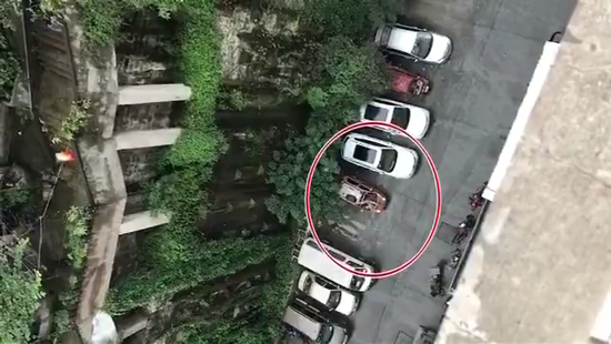 目击者还告诉第1眼和630记者,男子从高楼扔下了瓷碗、烧水锅等一些重物,把楼下的居民吓得不轻;过了一会,该男子更是直接“冲”下楼来,在停车场的车顶上打起了滚。不仅如此,他还对观江大厦停车场里的车一通乱打乱砸,场面差点失控。