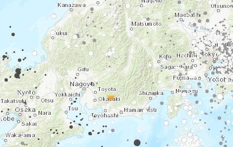 根据气象厅观测,这起地震震央位于爱知县东部,深度约40公里,推估规模5.1。