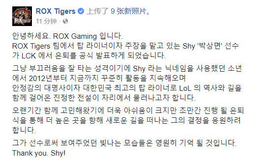 2016年对Shy来说是一个里程点,在这一年,他的心态因为比赛的失败而发生了一定的变化,从而影响了其在竞技比赛中的状态。在经过了离队和休养之后,2017年他选择了加入一支新的队伍,也就是ROX Tiger。然而即使是新队伍,也无法掩盖时间对一名电子竞技职业选手的影响,在2017年12月,Shy再次宣布离队——这一次是以正式退役为收场。