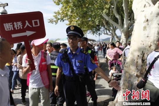 图为:西湖女子巡逻队队员服务游客。景区行政执法局供图