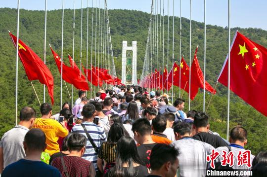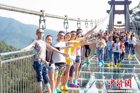 广东清远古龙峡玻璃桥受到游客们的追捧。曾令华 摄