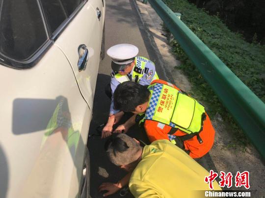 西安交警高速大队民警对高速公路上车辆的事故及故障进行处理。 西安交警高速大队供图 摄