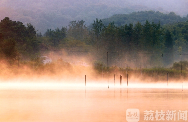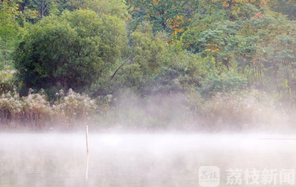 今天(10月8号)迎来了二十四节气中的“寒露”节气。这也意味着深秋正式开始,天气将越来越冷。由于昼夜温差大,在句容老虎洞水库,水面上白雾笼纱,水汽氤氲,如同水墨画一般,如梦如幻,美不胜收。