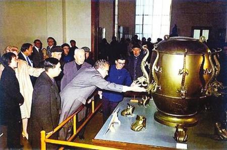 1972年美国总统尼克松参观中国历史博物馆,专门参观张衡地动仪。