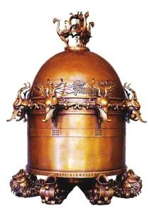 教材中的张衡地动仪。