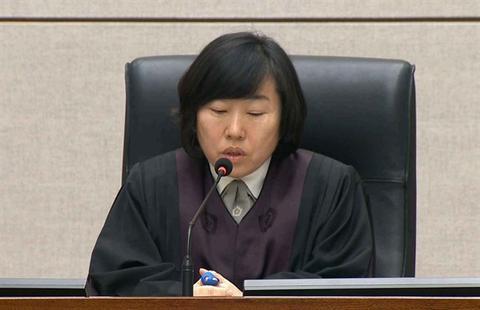 5日,法官宣读李明博案一审判决书。(韩联社)