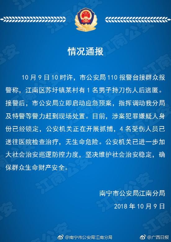 (原标题:南宁一男子持刀伤人后逃匿,警方通报:涉案犯罪人员已经锁定)