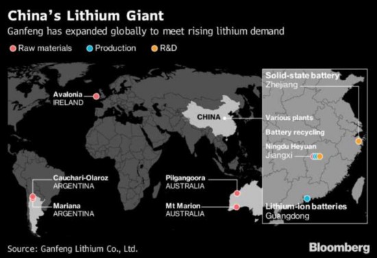 赣锋公司在全球扩张示意图