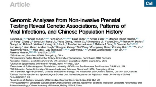 在严格遵从《人类遗传资源管理暂行办法》和生命伦理原则的规范下,以及充分重视知情同意和隐私保护的前提下, 华大研究团队选取了14余万无创产前基因检测数据展开了群体水平的研究,开发了一系列适用于此类数据的分析方法,揭示了包括31个省、36个少数民族与汉族在内的中国人群精细的遗传结构,实现了多种表型的全基因组关联研究,揭示了中国人群中病毒序列分布特征,构建了包含约900万个多态性位点的炎黄中国人群基因频率数据库 (CMDB),并成功发表于最新一期的国际顶级学术期刊《细胞》中。