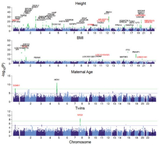 另外,研究小组对怀孕年龄和双胎怀孕两个表型进行了深入分析,发现了两个与怀孕年龄显著相关的基因位点,暗示着这两个位点的突变与生育力密切关联; 与此同时,还在NRG1基因中发现了一个和双胞胎妊娠显著相关的突变位点,也就是说携带NRG1基因的突变,有更高的几率怀上双胞胎。
