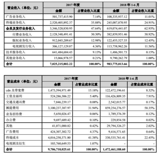根据公司披露的《2017 年年度报告》、《2018 年半年度报告》,公司营业收入、营业成本构成情况如下: