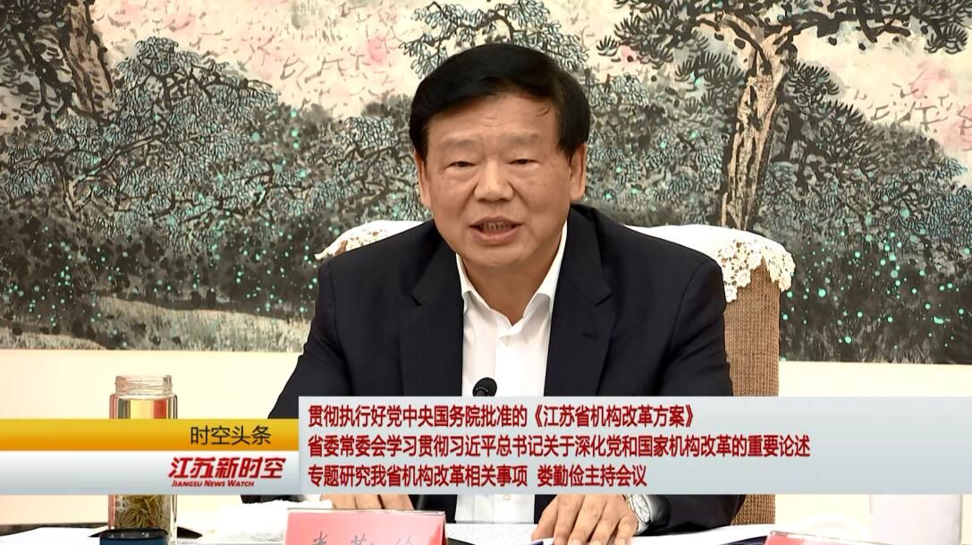 10月10日,省委常委会召开会议,深入学习贯彻习近平总书记关于深化党和国家机构改革的重要论述,传达学习中办国办《关于印发〈江苏省机构改革方案〉的通知》,研究我省贯彻意见,专题研究我省机构改革相关事项。会议强调,要坚持以习近平新时代中国特色社会主义思想为指导,全面贯彻落实党的十九大精神和习近平总书记关于深化党和国家机构改革的重要论述,充分认识做好这次机构改革工作的重大意义,贯彻执行好党中央国务院批准的《江苏省机构改革方案》。省委书记娄勤俭主持会议。