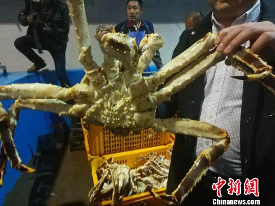 中新网珲春10月10日电 (郭佳 吕盛楠)大量来自俄罗斯的帝王蟹等海鲜产品,正通过地处中俄交界的吉林省珲春市进入中国各地。珲春官方10日发布数据显示,今年前八个月,珲春对俄贸易达23亿元,同比增长41.5%,其中,珲春对俄螃蟹贸易占5.73亿元,增长321%。