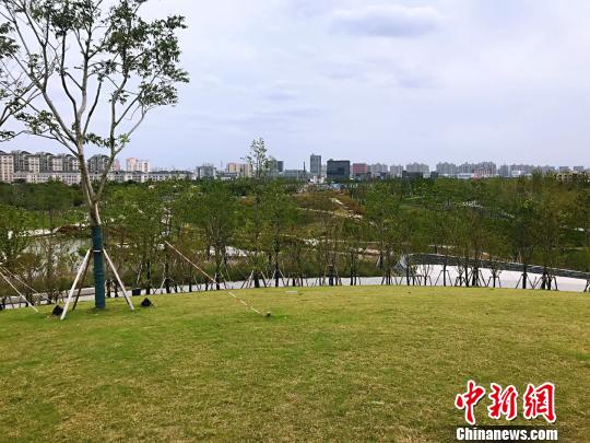 中央绿地已成为山峦起伏、绿意盎然的城市生态绿洲。王子涛 摄