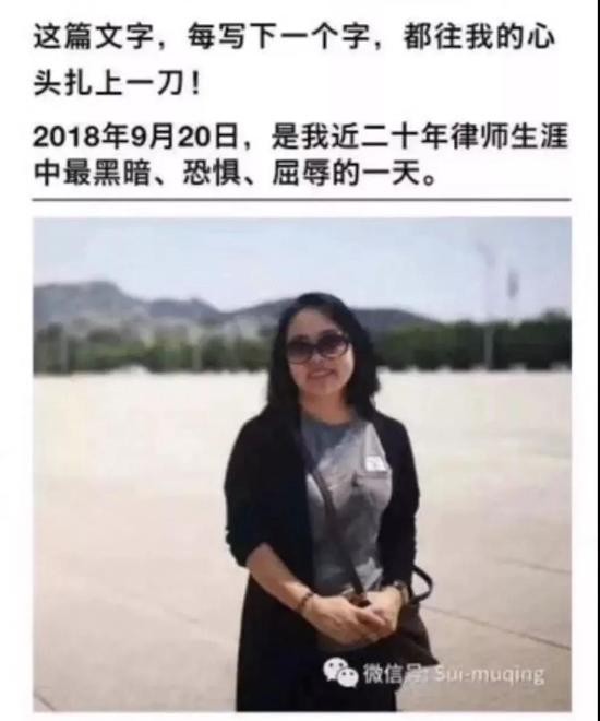 ▲女律师孙世华发文称,在派出所遭警方“碰瓷”式执法。网文截图