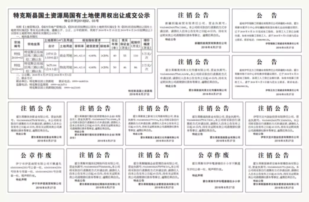 因为申请注销的公司太多,《伊犁日报》8月27日仅一天就刊登了25则“注销公告”(图自中国经济网)