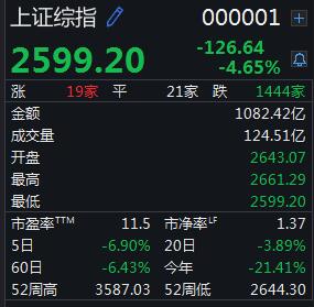 周四午后,沪指盘中失守2600点关口,近700只个股跌幅超9%。截至发稿,报2599.20点。