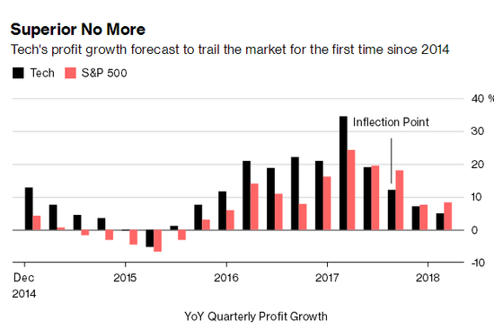 图:自2014年以来,科技公司的利润增长预计将首次落后于市场
