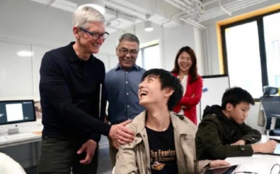 库克在北京看望了北京大学附中朝阳未来学校的学生们。这所学校将iPad和Apple Pencil整合到了它的学习课程中。参观完后,库克用自己的iPhone XS Max智能手机发博文称赞这所高中是一所“真正的模范学校”。
