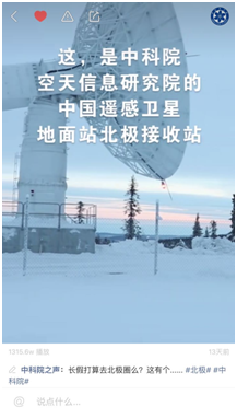 通过视频,我们用十几秒钟看到了昙花一现的全过程,见到了鬼吹灯中的尸香魔芋大王花,见识到了北极站的接收器是如何运动的,知道了中科院在北极的遥感卫星地面站每天的数据接收量是国内站的2倍以上,北极站的视频也收获了最高的1300万+的点击。