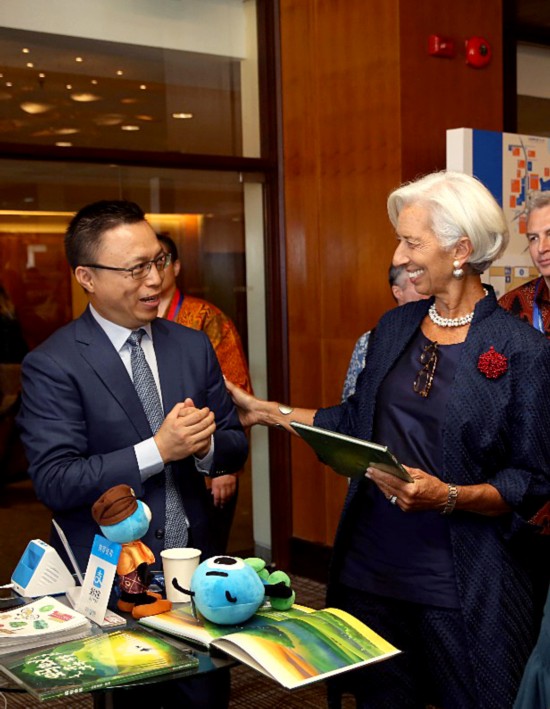 10月11日中午12点30分,在印尼巴厘岛举行的世界银行和国际货币基金组织(IMF)秋季年会上,IMF总裁克里斯蒂娜·拉加德和世行行长金镛走入了“创新展示,金融科技”的主题展览,蚂蚁金服/支付宝作为唯一的中国企业参展。