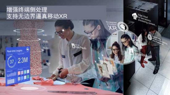 高通技术致力于在5G时代继续提供最佳终端侧功能,同时通过5G分布式功能,不断推动增强型服务或新服务的探索。此类新服务的一个用例便是未来的XR,到那时XR终端侧的功能可通过边缘云(计算、存储、渲染和内容等)得到增强并支持5G连接。