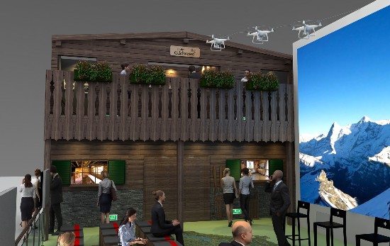 参观者在虚拟访问瑞士之后,可以享受瑞士特色美食,同时在位于瑞士小木屋二楼阳台处的瑞士邮政亭领取在体验“LiveMap”时获得的赠品。瑞士小木屋的背面是“休闲区”,参观者可以在模拟的瑞士高山草甸的自然环境中休息,享受瑞士大自然赋予的独特感官体验。