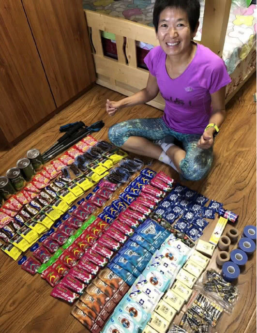 2014年在香港,邢如伶因Cp7之后跑错路,最终以18小时27分钟顽强地完成100公里组别的比赛!看看人家炫的各种能量胶和补给,跑圈大神不是一天练成的。