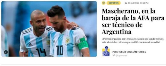 阿根廷媒体称,阿根廷足协已经开始考虑在明年启用马斯切拉诺的可能性。目前,马斯切拉诺还没有做出关于明年的最终决定,这就增添了他返回祖国执教的可能性。据了解,马斯切拉诺成为阿根廷主帅的最大优势,在于他和梅西的关系。虽然在代表阿根廷国家队参加世界杯期间表现低迷,但是如果他执教阿根廷,将带给梅西更多的“信心”,这也是阿根廷足协考虑的最重要因素。
