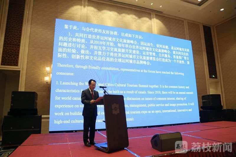 最后,会议达成了《世界运河城市文化旅游合作江苏共识》,包括:一,共同打造世界运河城市文化旅游峰会。二,共同搭建世界运河城市文化旅游网络平台。三,共同推进世界文化旅游市场繁荣。江苏省文化厅厅长杨志纯说,“世界因运河而精彩,运河因城市而璀璨。我们将全面加强双边、多边对话与合作,切实把运河城市打造成为世界人民向往的诗和远方。”