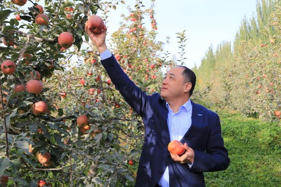 在阿克苏种植基地,卞农与行业协会负责人、龙头企业负责人、农户交流,详细了解了果园管理、水果品质的把控等情况并亲自从树上摘下成熟的果实,现场品尝,测试糖度,检验水果品质,察看果树种植和生长情况。“嗯,特别甜,汁也多,品质真的好”,卞农非常满意的评价着手中的苹果。