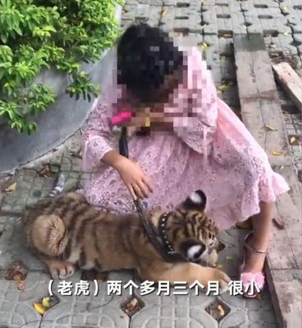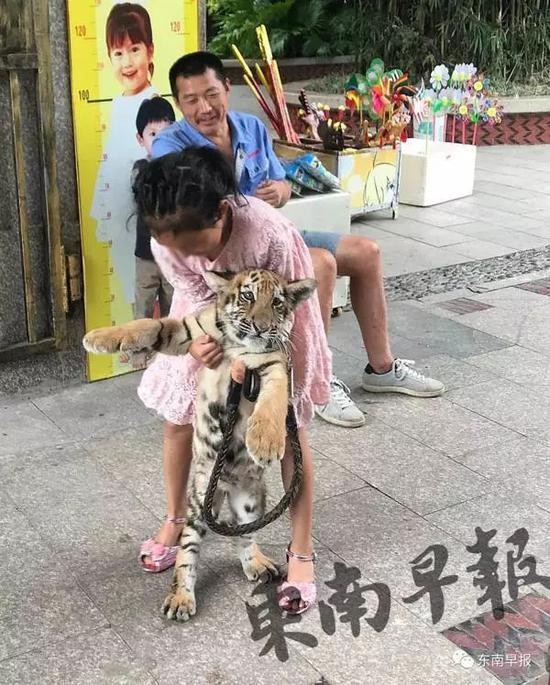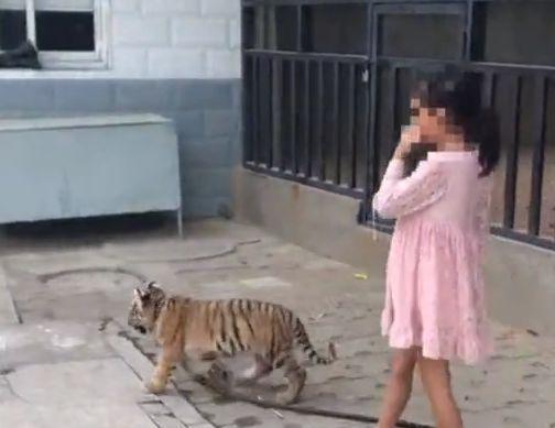 发现一名9岁的女孩在动物园门口遛老虎