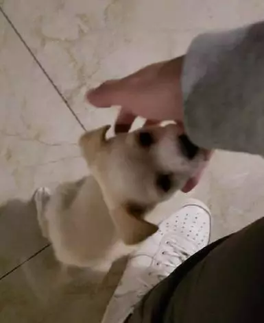 群里还有他发的两张照片,一张是幼狗蹲在地上,有人抚摸其头部,另一张照片则从宿舍楼上往下拍摄,狗躺在了空地上。