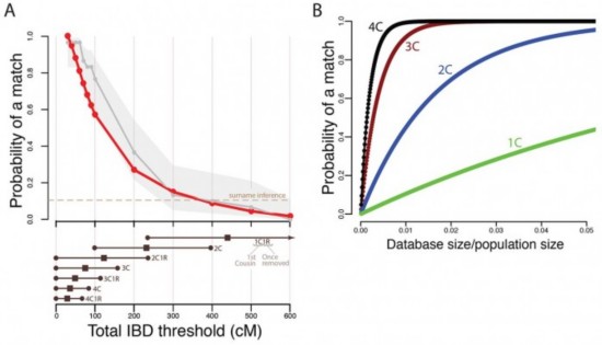 研究论文写道:“通过使用利用消费者基因学测试出的128万个人的基因数据,我们对这项技术的能力展开了调查。我们预计,在对欧洲后裔的搜索中,约60%的人会找到第三个表亲或更接近的人,而这能让他们利用人口统计学标识符进行身份识别。”