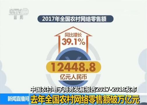 据统计,2017年全国农村实现网络零售额突破万亿大关,达12448.8亿元人民币,同比增长39.1%。其中:服装鞋包、家装家饰、食品保健位居农村实物类产品网络零售额前三位;农村服务类产品中,在线旅游、在线餐饮表现尤为突出。