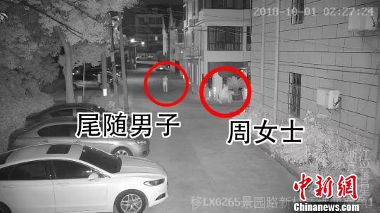 图为:嫌疑人跟踪周女士。 监控截图 摄