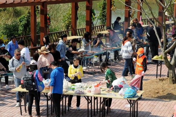 金秋十月,遍地稻黄,正是一年出游的最好时节。在活动现场,记者看到一群小朋友正在用五彩笔在风筝上描绘秋天的印记,然后放上蔚蓝天空肆意翱翔。在烧烤现场,游客和百姓们远离城市喧嚣,置身于田园的清新和宁静中,感受田头坝上的烧烤美味。还有在农产品销售区,众多的生态农产品被游客抢购一空。最热闹的要数是圈鹅套鸭现场,里三圈外三圈的篱笆里会不时冒出一声一群欢呼声,又是有那个游客套中了一只鹅或者一只鸭。那天山水生态园内的一个个美景,一场场互动使得喜笑颜开游客和百姓处处可见,从他们合不融嘴的笑容中能感受到秋天丰收的快乐。