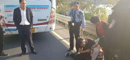 行驶过程中,年轻男子突然走到司机汤师傅身边,一手按住驾驶住座椅椅背,一手按在方向盘上方的仪表盘上,要求停车,扯着嗓子说自己难受。当时,车正行驶在水坝上,按规定不能停车,男子开始骂机司。